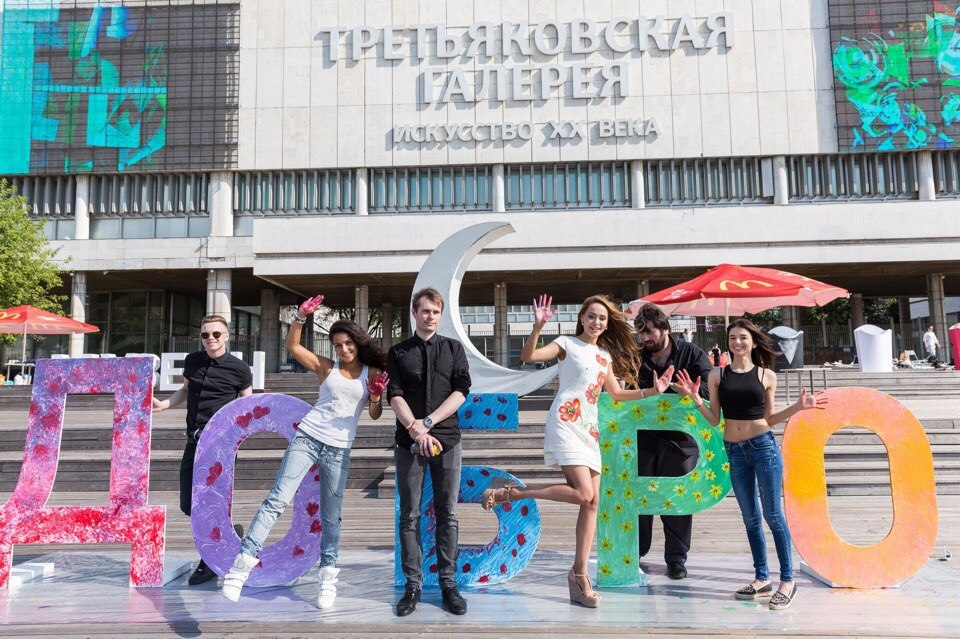 В Москва в парке "Музеон" на днях состоялась благотворительная акция "Макдоналдс" "Твори добро" при участии звездных гостей и журнала "STARHIT". Серди участников акции оказались: актриса и певица Анна Калашникова, участники телепроекта "Голос" Мария Ероян, Татьяна Ширко, Шариф, победитель "Высшей пробы" Данил Буранов, художник Платон Петров. Артисты дружно разукрасили большие буквы "ДОБРО", тем самым, поддержав акцию.
